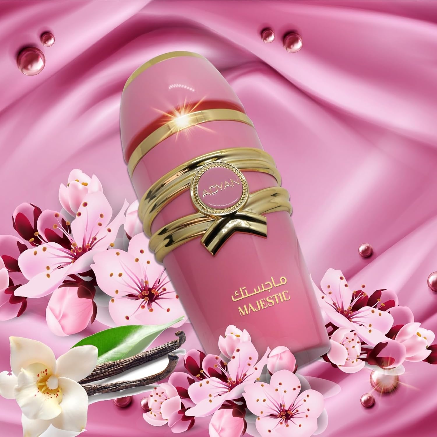 Adyan Majestic Eau de Parfum for Women presents a sophisticated fragrance inspired by Arabian elegance. This refined 100 ml Extract de Parfum reveals vibrant top notes of orchid, heliotrope, and tangerine, followed by a gourmand heart enriched with tropical fruits. Its warm base of vanilla, musk, and sandalwood creates a sensual, long-lasting finish. Ideal for those seeking a luxurious and exotic scent that embodies the spirit of Arabian perfumery.