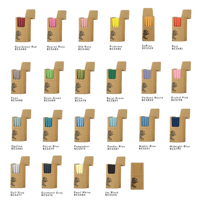 British Colour Standard presents a refined collection of solid colour dinner candles in a convenient bulk pack of 25. These 25cm (10") candles are hand-poured by skilled artisans, embodying eco-friendly and Fair Trade values. Ideal for mixing and matching, they add a sophisticated splash of colour to any setting, enhancing your home décor for elegant entertaining or as a thoughtful, stylish gift.