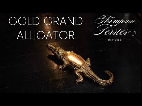 Thompson Ferrier's Gold Grand Alligator Candle is designed as a bold decorative statement piece that also serves to fragrance your home. Each ceramic candle is meticulously hand-detailed to ensure every aspect of the design stands out, making it a striking addition to any space. The Gold Grand Alligator Candle allows you to fill your room with luxurious fragrance while making a bold design statement.