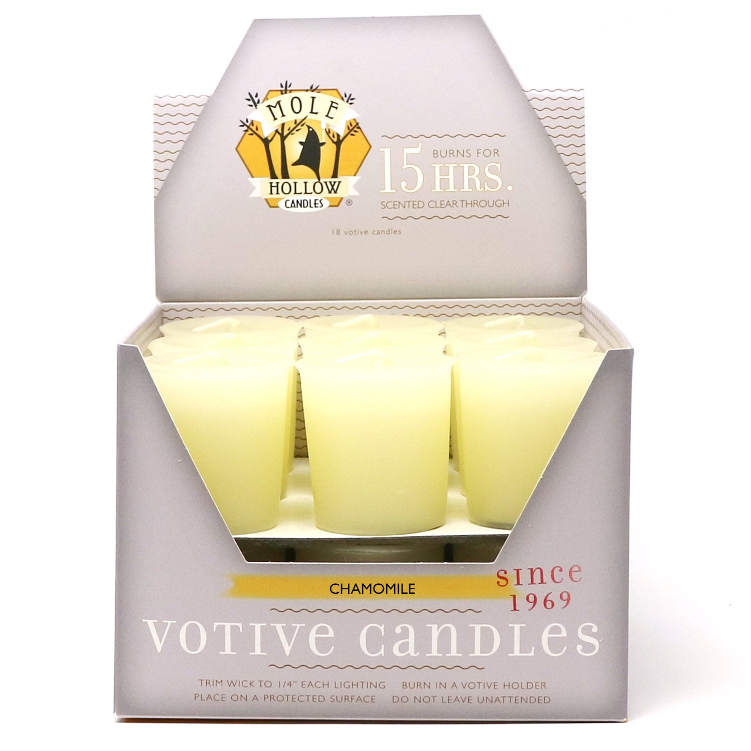 Mole Hollow Candles, Chamomile Scented Votive Candles, 18 Votives Box