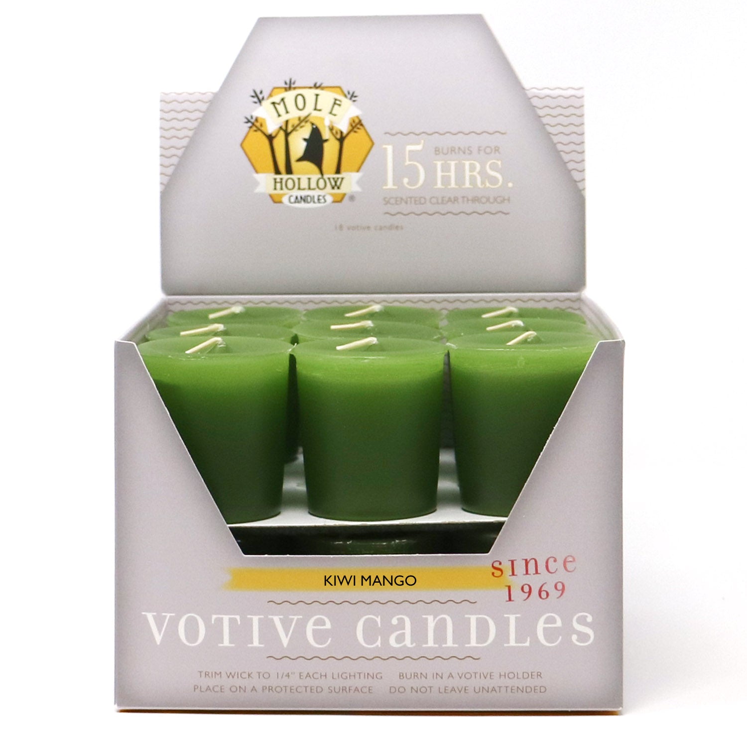 Mole Hollow Candles, Kiwi Mango Scented Votive Candles, 18 Votives Box