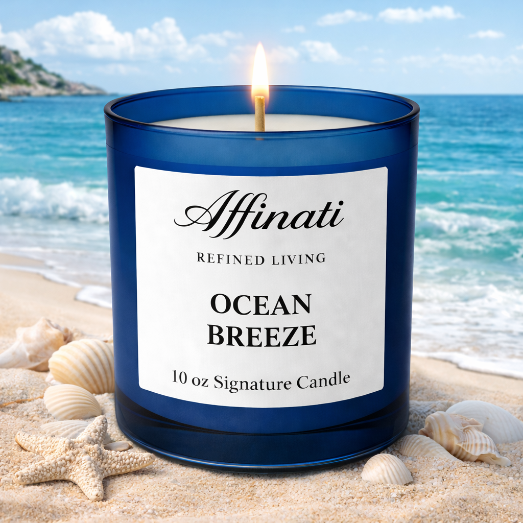 Refresh your home with the Affinati Ocean Breeze Signature Candle – 10 oz, a light and invigorating fragrance inspired by coastal air. Crisp aquatic notes blend with subtle citrus and clean musk, creating a scent that feels fresh, calming, and effortlessly uplifting.