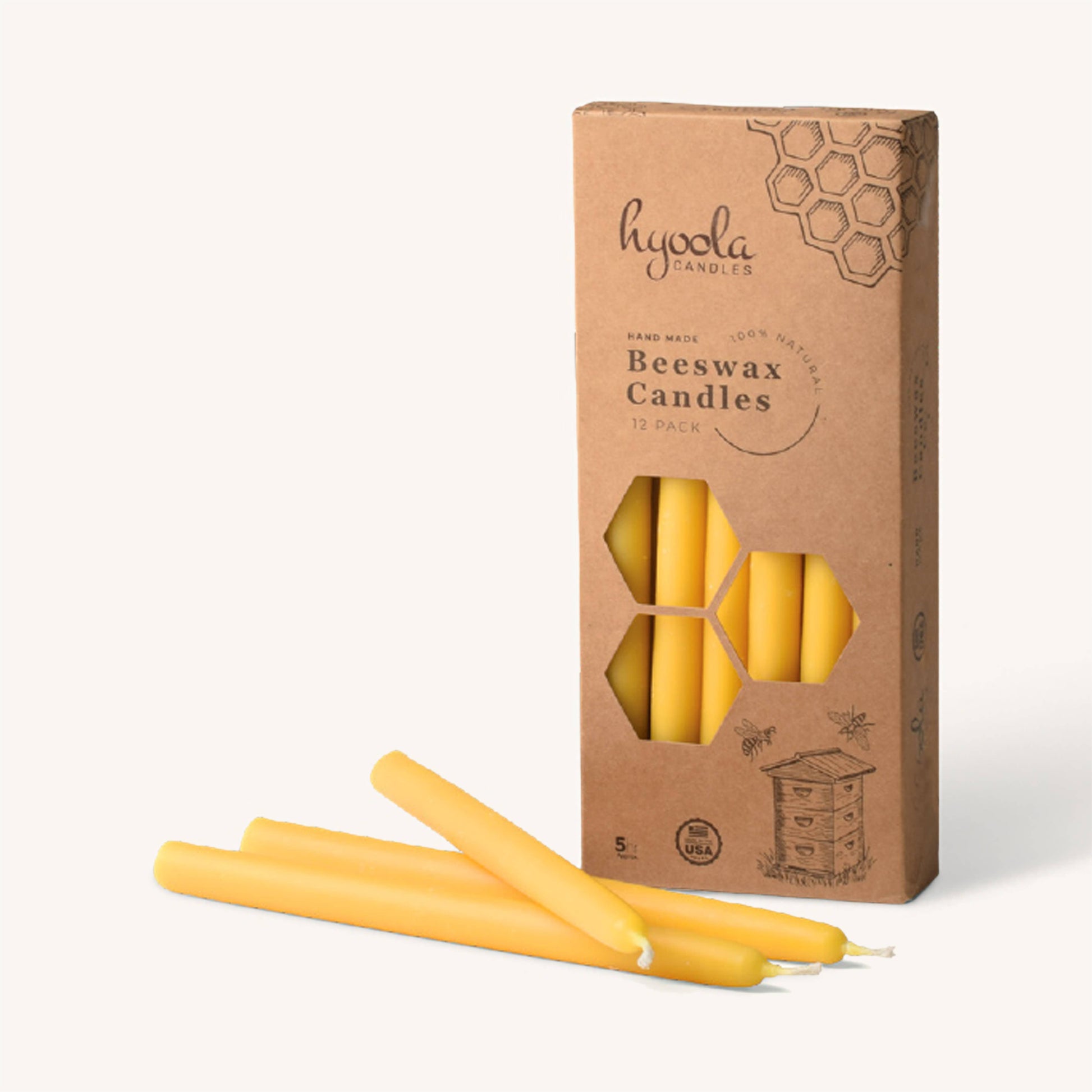 Hyoola Handmade Natural Beeswax Candles, handcrafted in the USA, embody nature's elegance. Crafted from 100% all-natural beeswax and featuring 100% cotton wicks, they burn cleanly and drip-free. Illuminate your space with their inviting, toxin-free glow, all while supporting local craftsmanship and sustainability. Perfect for your next event, party, or holiday. Experience the warmth of Hyoola Beeswax Candles - a touch of nature's beauty in every flame.